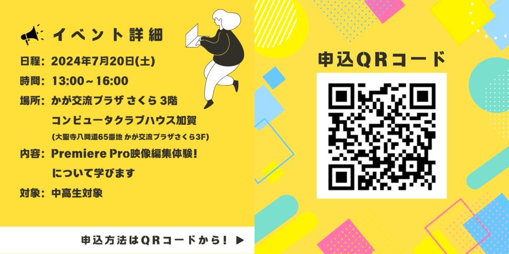 7月20日(土)にPremiere Pro映像編集体験!を行います
