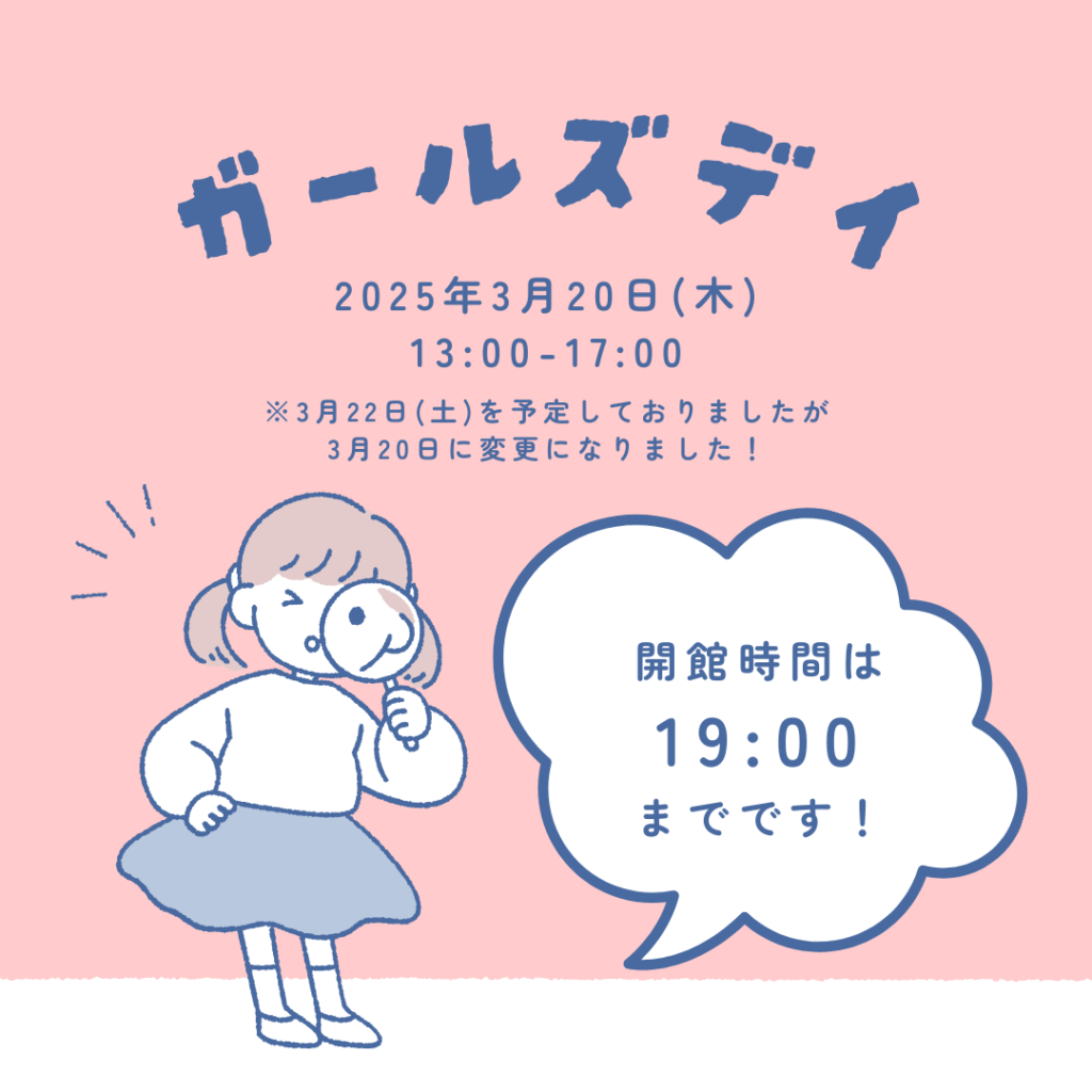 次回のガールズデーは3月20日(木)です!